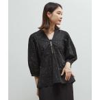 Shanti Shanti クリンプブラウス【WEB限定】 / ブラウス トップス 羽織り レディース 春 秋 冬 長袖 刺繍 花 フラワー ノーカラー 紐 インド綿 コットン ow