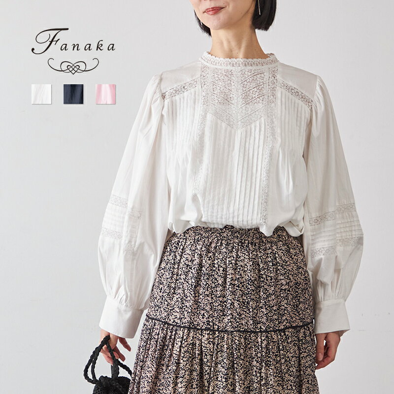 【再入荷】Fanaka リバーレースボリュームスリーブブラウス レディース 春 夏 秋 冬 インド綿 レース リバーレース 長袖 ボリューム袖 ホワイト/ブラック/ピンク/黒/白 ブラウス トップス きれいめ 大人 カジュアル ナチュラル クラシカル フェミニン 卒業式 入学式