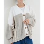 カーディガン 「refinedworks」 爽やかな ストライプ柄 と ドッキング した カーディガン レディース