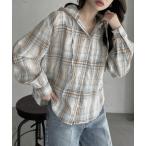 ブラウス シャツ 1枚で着映えするフーディチェックシャツ レディース