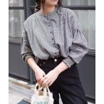 ブラウス シャツ ノーカラーギャザーフレアブラウス(インド綿.インドコットン.コットン100%,綿100%) レディース