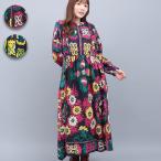 Shanti Shanti スザニプリントワンピース【WEB限定】 / ロングワンピース レディース 春 秋 冬 ボタニカル柄 長袖 スザニ刺しゅう 刺繍 インド 綿100% ow