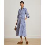 シャツワンピース ストライプド アイレット ブロードクロス シャツドレス