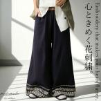 花柄刺繍ワイドパンツ レディース パンツ インド綿 送料無料・メール便不可