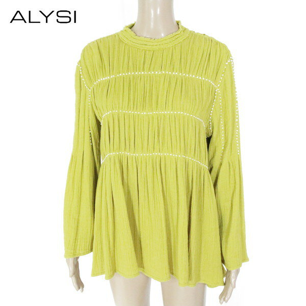 80%OFF 新品 アリジ ALYSI トップス 42 ECS1270 Lサイズ イエロー レディース 長袖トップス コットン インド綿 プリーツ