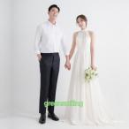 ウェディングドレス ウエディングドレス ロングドレス 二次会 結婚式 前撮り ブライダル 花嫁 スレンダードレス ホルターネック 後ろリボン 袖なし