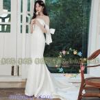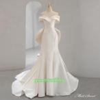 ウェディングドレス ロングドレス マーメイドドレス オフショルダー サテン リボン 上品 二次会 結婚式 前撮り ブライダル 花嫁 ウエディングドレス