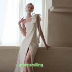 ウェディングドレス ウエディングドレス 二次会 結婚式 前撮り ブライダル ロングドレス 花嫁 スレンダードレス スレンダーライン 白 スリット ワンショルダー