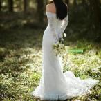 ウェディングドレス オフショルダー 長袖 総レース マーメイド サテン ロング 二次会 結婚式 披露宴 前撮り 後撮り 発表会 花嫁 ウエディングドレス エレガント