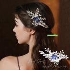 ヘッドドレス コーム 髪飾り ヘアアクセサリー 二次会 発表会 結婚式 花嫁 和装 着物 卒業式 誕生日 上品 パーティー ウェディング ブライダル ブルー シルバー
