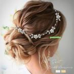 ヘッドドレス ヘアバンド バックカチューシャ 花 ビーズ カチューシャ 二次会 発表会 結婚式 花嫁 パーティー ウェディング ブライダル ゴールド シルバー