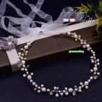 ウェデイング パール ヘアバンド ヘッドドレス ブライダル小物 髪飾り ブライダル 花嫁 二次会 パーティー 結婚式 披露宴 発表会 リボン シルバー ゴールド