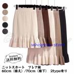 ニットスカート レディース マーメイドスカート 無地 フレア裾 60cm(膝丈)/70cm(膝下) ボトムス カジュアル ハイウェスト 美脚 春秋冬 おしゃれ