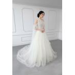 エマリーエ EMarie エリザベート Aライン ウェディングドレス ホワイト 白 ケープ オフショルダー リボン くるみボタン 2wayトレーン