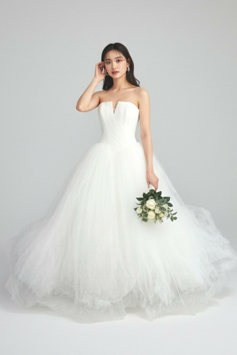 ドレス チュールトップス・パニエ付き 2WAY ハートネック プリンセスライン ウエディングドレス