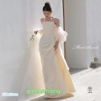 ウェディングドレス ロングドレス マーメイドドレス オフショルダー サテン リボン 上品 二次会 結婚式 前撮り ブライダル 花嫁 ウエディングドレス