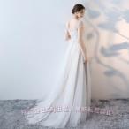 ホワイト 半袖 ウェディングドレス Aライン ロングドレス ウェディングドレス トレーン レース 素地 xs〜xl Wedding Dress お花嫁 結婚式 旅行撮影演出 レディースウェディングドレス ファスナー フリル付き ボタン飾り