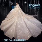 ロングトレーン 高級ウエディングドレスお花嫁ドレスプリンセスライン ブライダル パーティードレス スパンコール 株式会社S&L 星空ワンピース 華やか 編み上げ