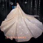 ロングトレーン 高級ウエディングドレスお花嫁ドレスプリンセスライン ブライダル パーティードレス スパンコール C&J 星空ワンピース 華やか 編み上げ
