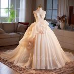 カラードレス シャンパン ベアトップ 花モチーフ 演奏会 発表会 二次会 花嫁 ウエディングドレス ウェディングドレス Aラインドレス プリンセスドレス