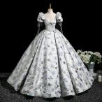 カラードレス グレー 花柄 ジャガード 半袖 演奏会 発表会 二次会 花嫁 ウエディングドレス ウェディングドレス ロングドレス Aラインドレス プリンセスドレス