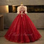 カラードレス ワインレッド 袖付き 演奏会 発表会 二次会 花嫁 ウエディングドレス ウェディングドレス ロングドレス Aラインドレス プリンセスドレス