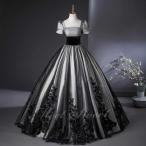 カラードレス ブラック 半袖 黒 演奏会 発表会 二次会 花嫁 ウエディングドレス ウェディングドレス ロングドレス Aラインドレス プリンセスドレス