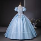 カラードレス ライトブルー 半袖 演奏会 発表会 二次会 花嫁 ウエディングドレス ウェディングドレス ロングドレス Aラインドレス プリンセスドレス