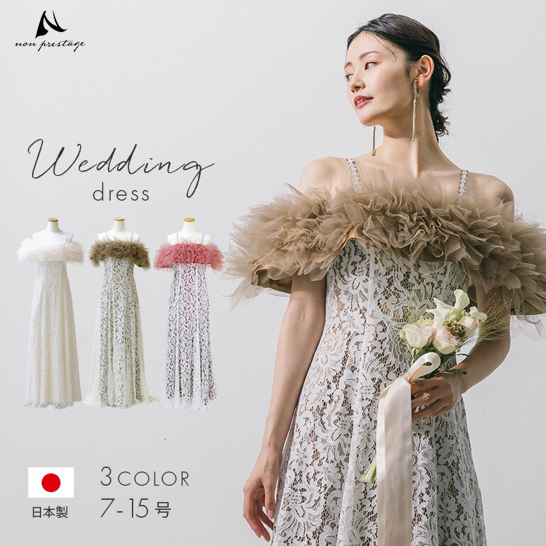 ウエディングドレス ロングドレス 白 前撮り 二次会 カラードレス レース チュール 編み上げ 花嫁 結婚式 ドレス 披露宴 挙式 大きいサイズ 日本製 (op3754)