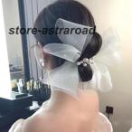 ウエディングヘッドドレス ウェディング リボンヘアピン ホワイト ハードチュール パールUピン 花嫁小物 結婚式 披露宴 ブライダル 二次会 前撮り パーティー
