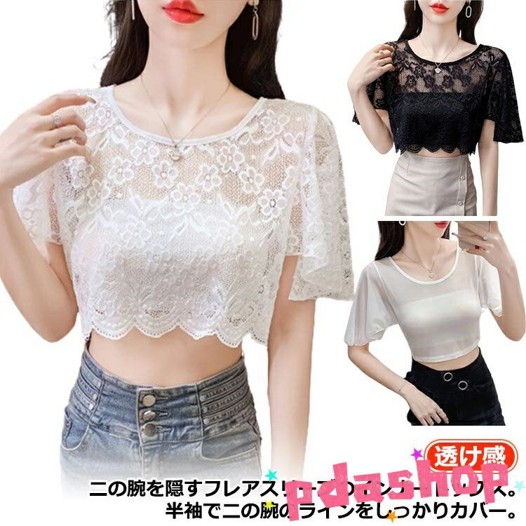 【全品2点で5%OFF】二の腕カバー フリル レース 着痩せ 付け袖 インナー レイヤード ひらひら フリル袖 半袖 重ね着 付け袖 トップス 付け袖 つけ袖 体型カバー ホワイト 透け感 細見え 夏 フレアスリーブ 上品 振り袖 ブラック パーティドレス 春 フレア