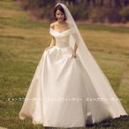 ウエディングドレス サテン 結婚式 aライン プリンセスドレス 二次会 ロングドレス 花嫁 ブライダル パーティードレス 演奏会 披露宴 トレーン オフショルダー