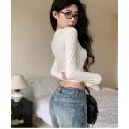 tシャツ ウエストボタンクロップド丈トップス レディース