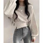 ニット セーター シャギースクエアネッククロップド丈ニットトップス レディース