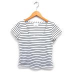 エゴイスト EGOIST カットソー クロップド ペンタゴンネック ボーダー 透け感 半袖 F オフホワイト /NT34 レディース