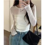 tシャツ オフショルダードレープ長袖トップス レディース