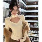 tシャツ オープンショルダークロップド丈ハイネックロンT レディース