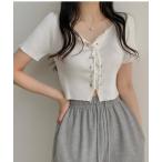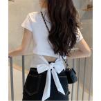 tシャツ フロントリボンレースアップクロップド丈トップス レディース