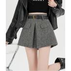 パンツ スカート見えウールライクショートパンツ ベルト付き レディース