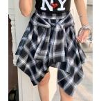 スカート チェック柄レイヤード風アシメトリースカート スカパン