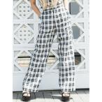 スウェットパンツ ジャージ チェック柄ハイウエストワイドパンツ レディース
