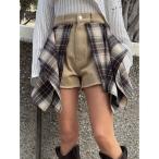 パンツ チェックシャツドッキングツイルショートパンツ レディース