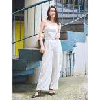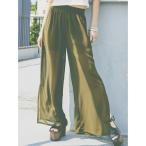 パンツ パイピングラインロゴ刺繍ワイドパンツ レディース