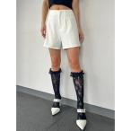 パンツ スカート見えウールライクショートパンツ ベルト付き レディース