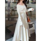 ワンピース オフショルダーハイウエストフレンチロングニットワンピース