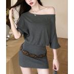 ワンピース 2点セットベルト付きオフショルダー半袖ミニワンピース