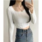 ニット セーター シャギースクエアネッククロップド丈ニットトップス レディース