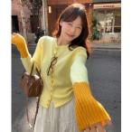 カーディガン 配色袖ボタンデザインニットカーディガン レディース