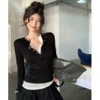 ニット セーター ドッキングヘンリーネックニットトップス レディース