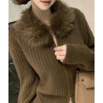 カーディガン ビック衿ファーニットカーディガン レディース